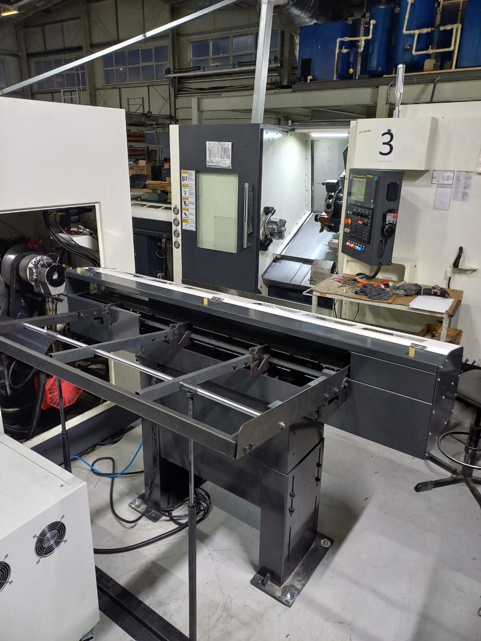 - Два токарных металлообрабатывающих центра с приводным инструментом, осью Y, контршпинделем и податчиками прутка (барфидер) Ронтек HTC550SMY;